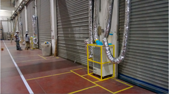 客户诉求:夏季时车间温度为35℃,集装箱装货时由于箱体内温度可以达到40℃以上,温度过高,工人无法正常工作。