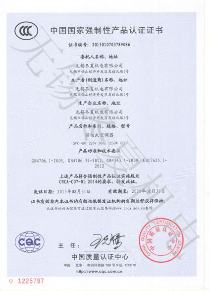 近日,ku酷游官方最新网站-ku酷游(中国)的移动工业冷气机、暖风机产品7个型号取得了中国质量认证中心颁发的3C强制认证证书。